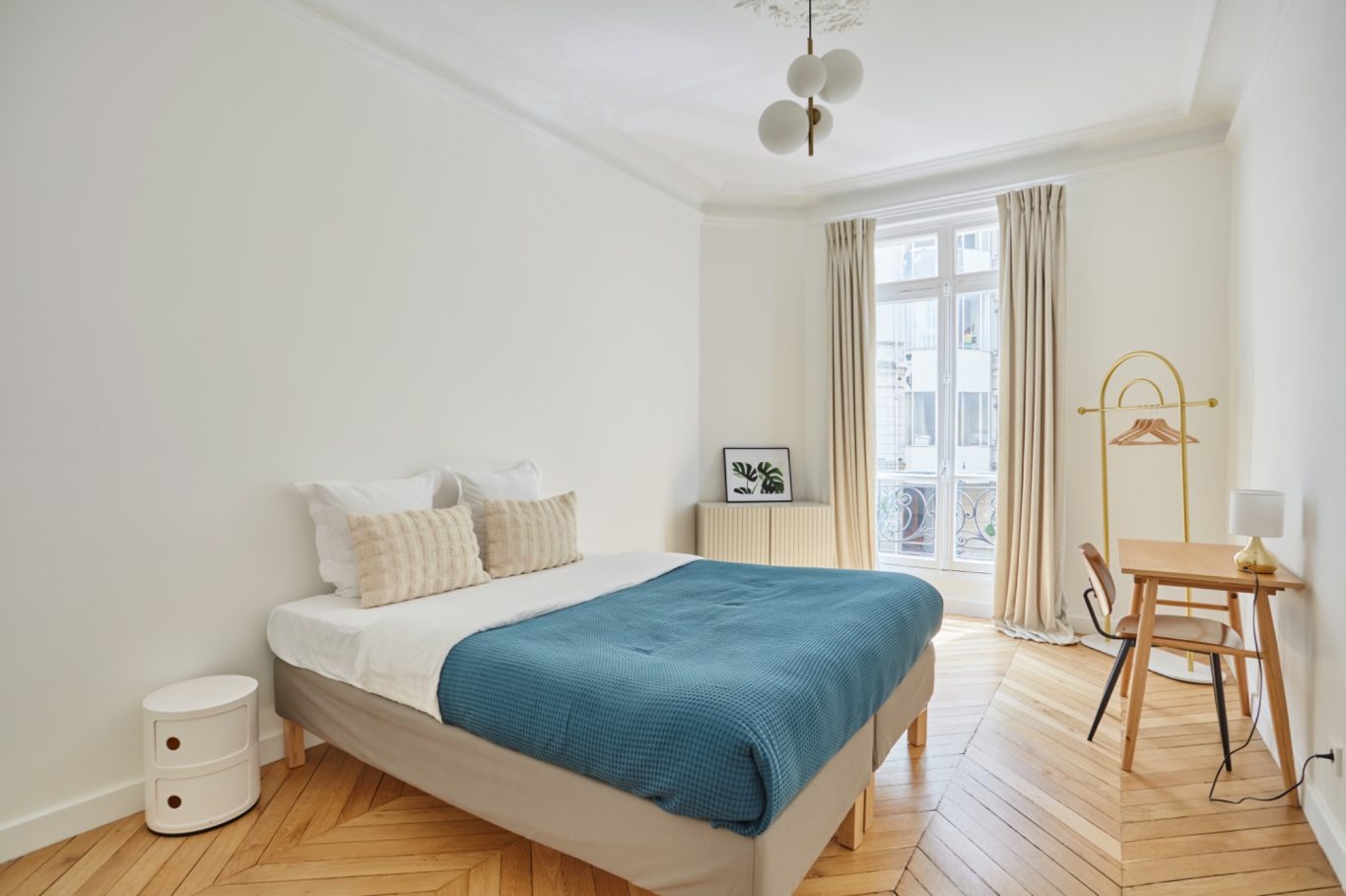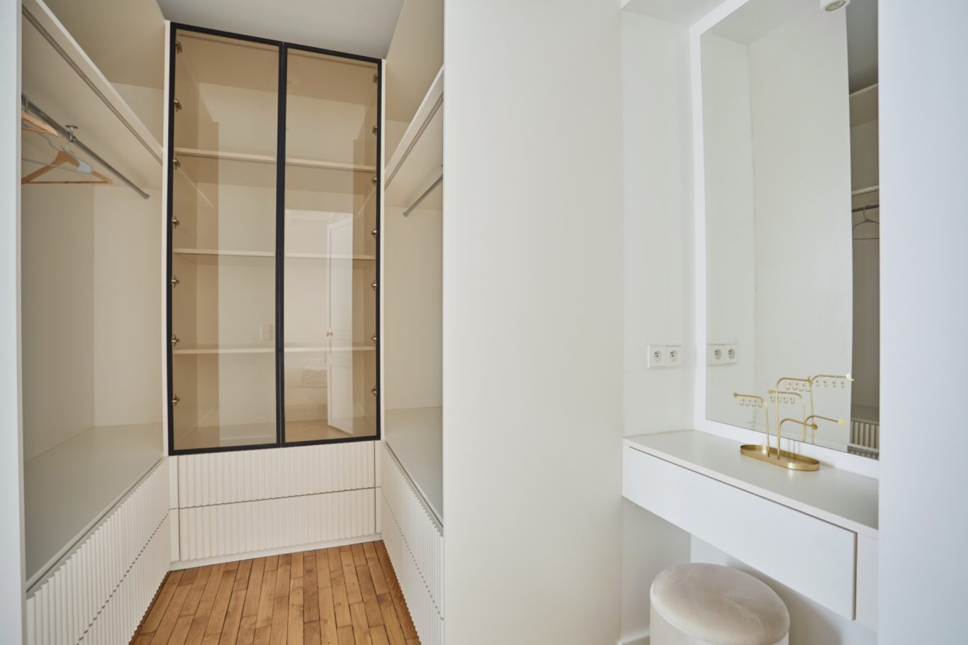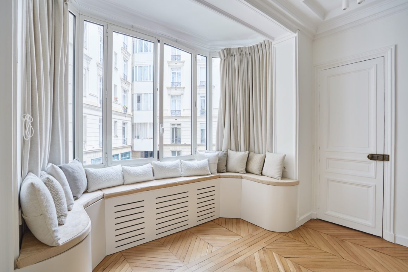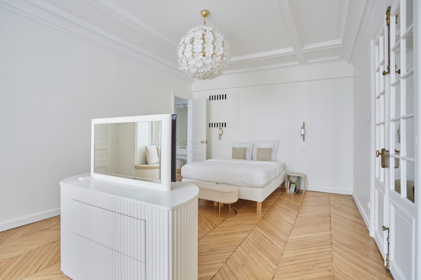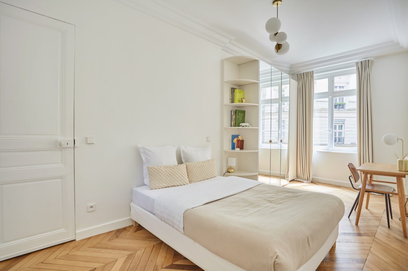 Cet appartement a fait l'objet d'une rénovation haut de gamme mettant en valeur les parquets et les moulures.