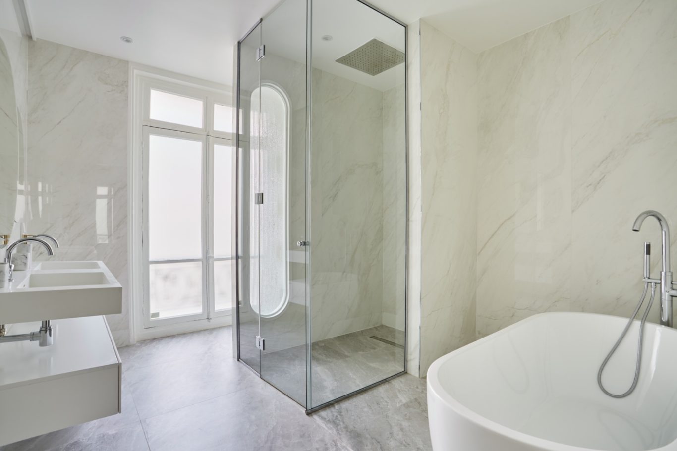 - Une grande suite parentale de 27m2 avec, un espace boudoir dans un bow-window, un dressing et une salle de bains avec douche, baignoire et toilettes.